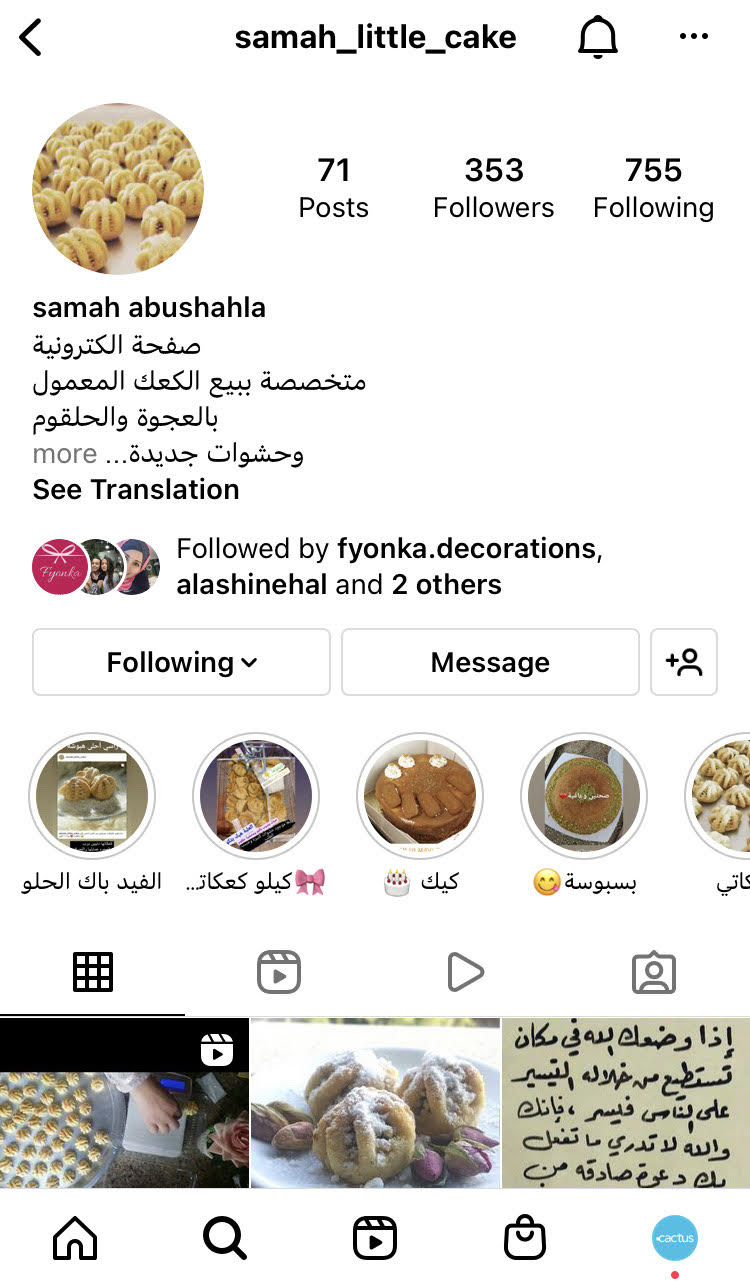 “كورس كاكتوس لإنشاء وتطوير مشاريع تجارية أعطاني الجرأة والثقة كيف أبلش بالمشروع من ناحية دراسة كل المحتويات وتحسين مهارات التواصل مع الأخرين. استفدت من خطاب المصعد بالترويج لمشروعي والوصول لأكبر عدد من الناس والتشبيك مع شيفات الكورس بيوفر قاعدة بيانات لأي امرأة بتفكر تبدأ مصلحتها التجارية أو تطور مشروع قائم لديها.انا قبل كاكتوس ما كان عندي جرأة وشجاعة إني أبدأ مشروعي الخاص وكاكتوس أعطتني الدفعة اللي بحتاجها حتى أبدأ مشروعي ،تعلمت كيف أحدد شريحة الزبائن وأحدد احتياجات السوق، كيفية التسويق والترويج لمشروعي تعرفت من خلال اللقاءات المباشرة تعرفت على نساء بتشبهني وبتسعى لتحقق هدفها ، سمعت آراؤهم ومقترحاتهم واستفدت منهم.”